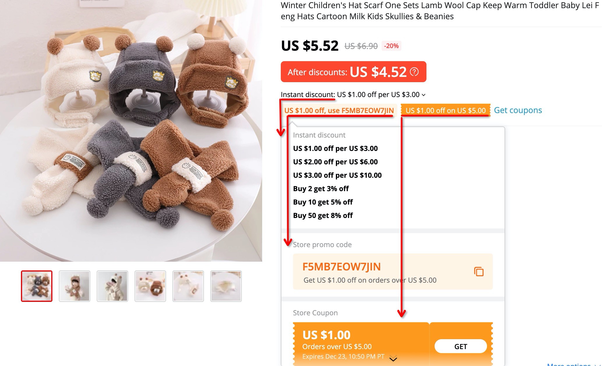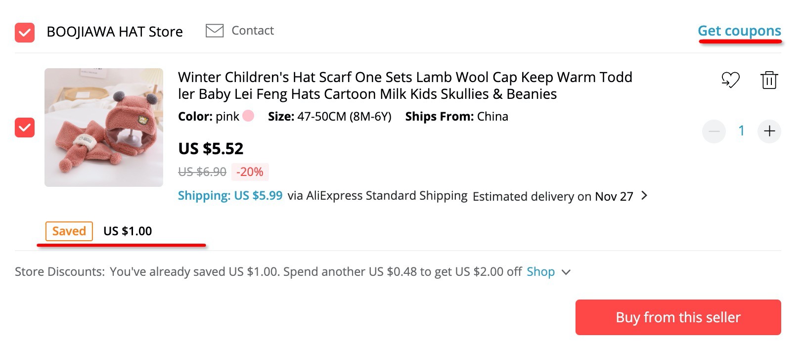 Poznámka: Kupón obchodu lze použít s kupónem AliExpress, zatímco propagační kód obchodu nikoli.