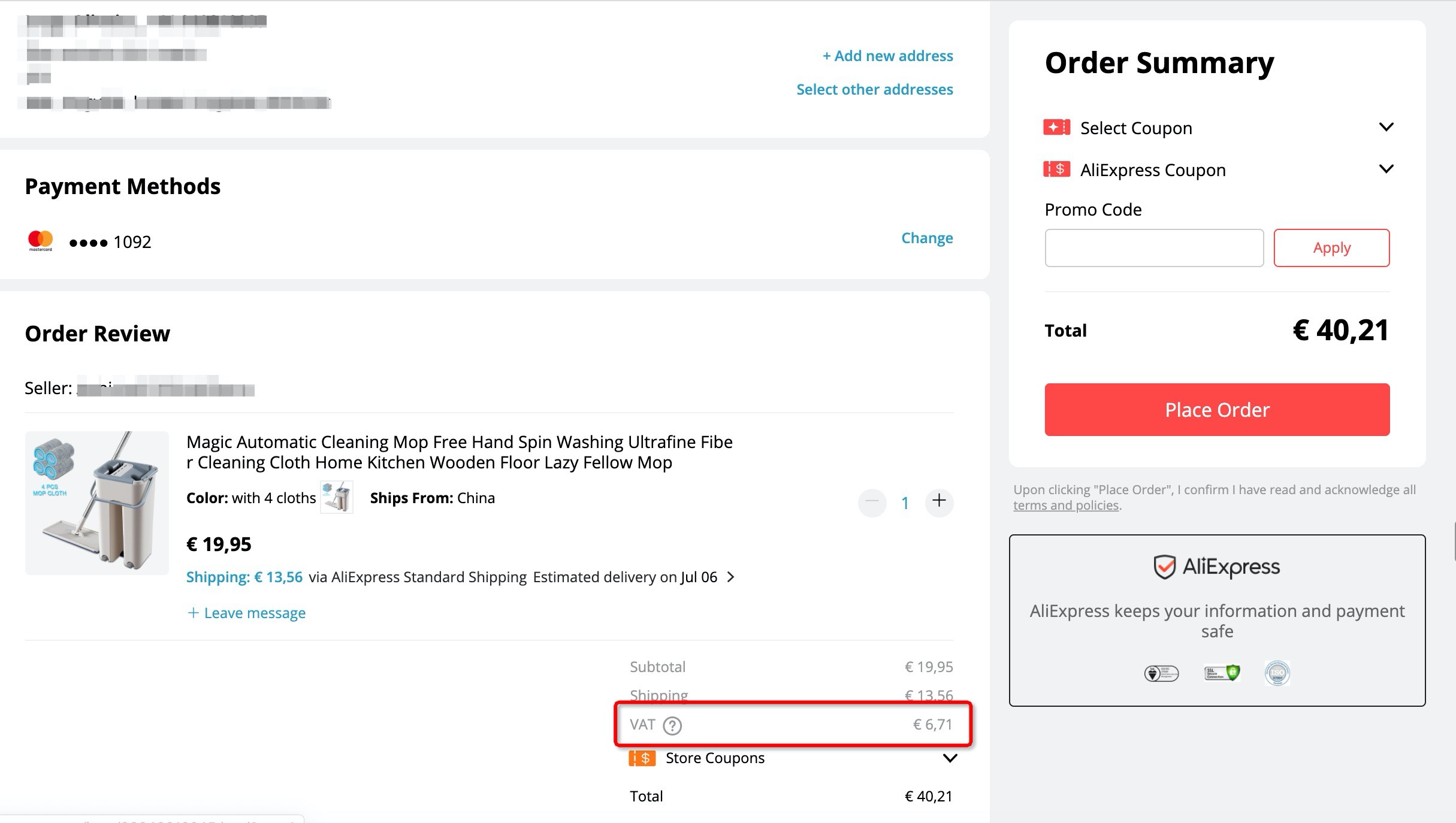 Hodnotu DPH naleznete na stránce se souhrnem objednávky, jak je uvedeno níže.