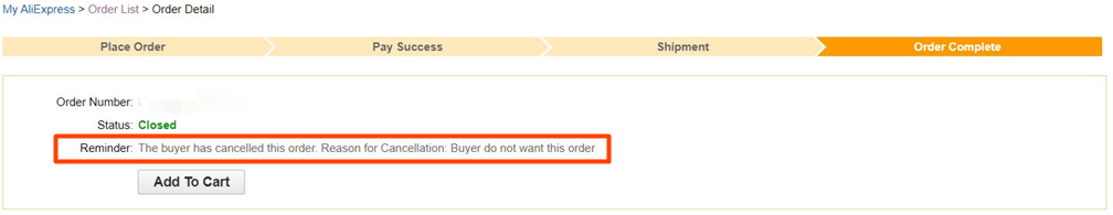 Vždy můžete zkontrolovat důvod uzavření ve svém účtu AliExpress v sekci Moje objednávky.